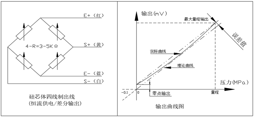 五、扩散硅压力芯体 PT500-304结构及电气参数: