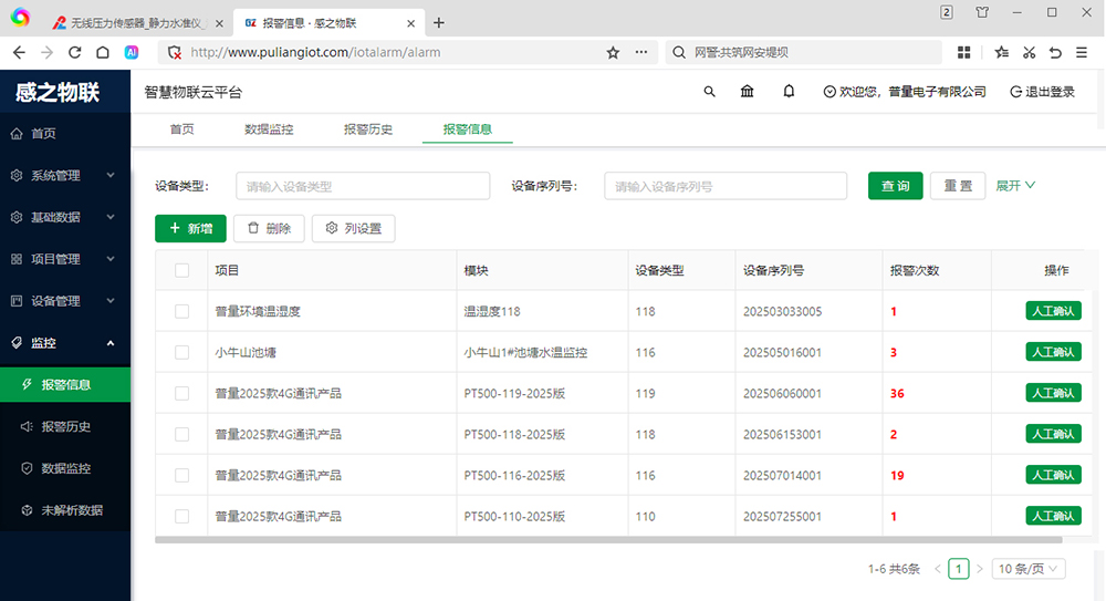 五、消防栓消防管网供气供暖物联压力传感器 PT500-160 感之物联监控平台: