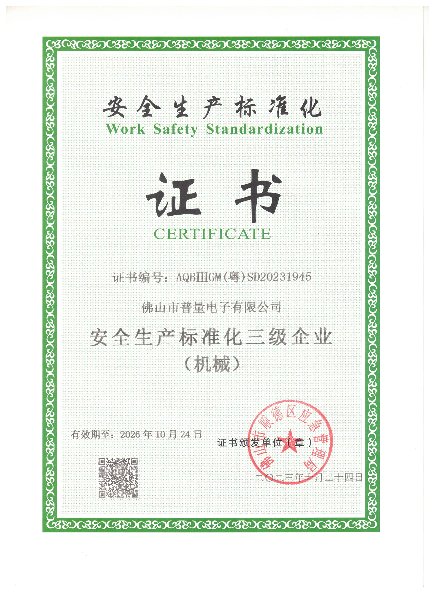 标准化证书