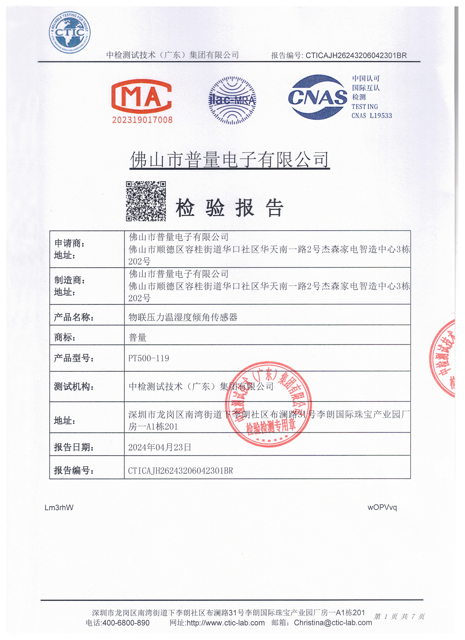 物联传感器第三方检测报告