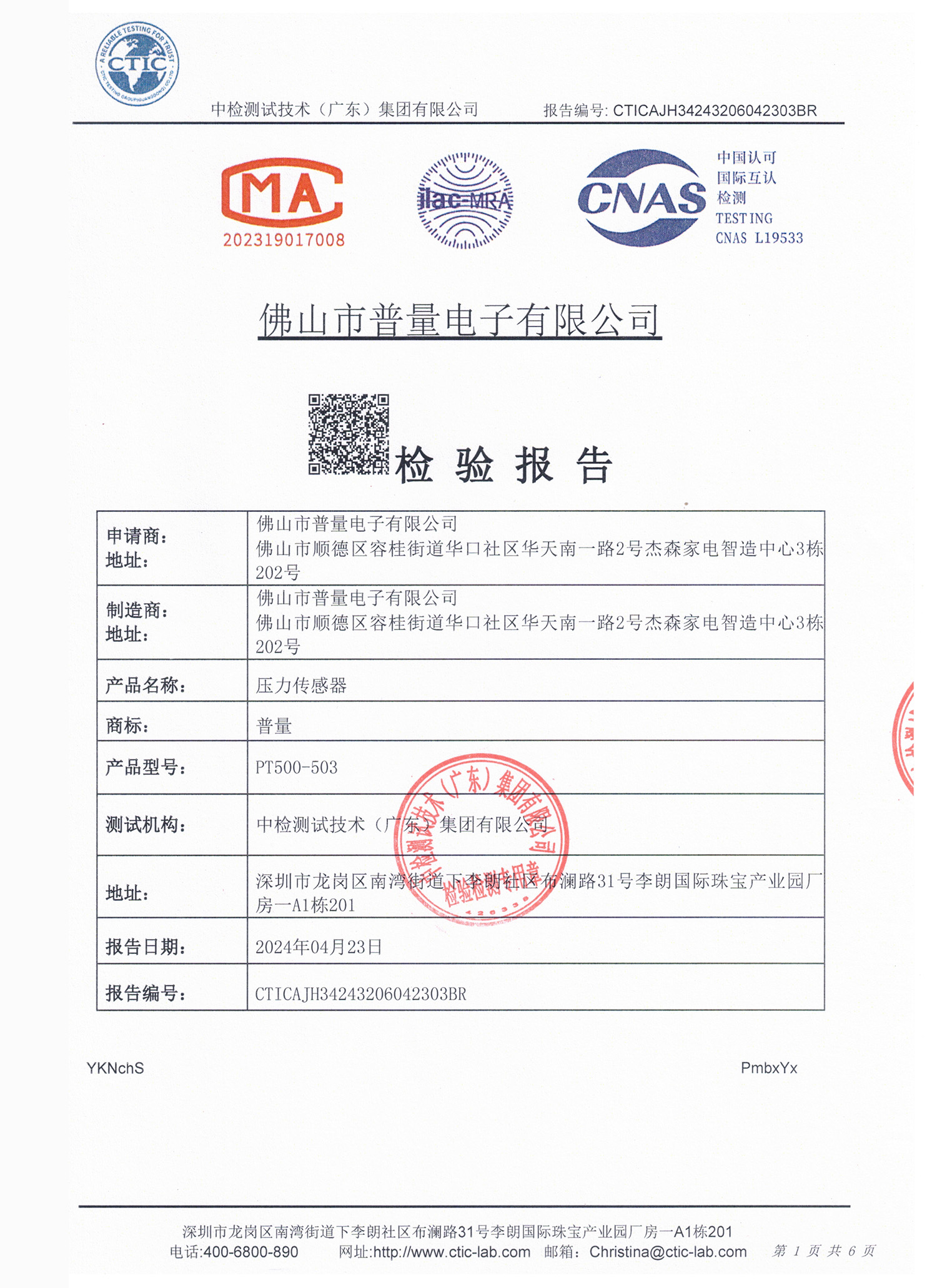 通用型压力传感器第三方检测报告